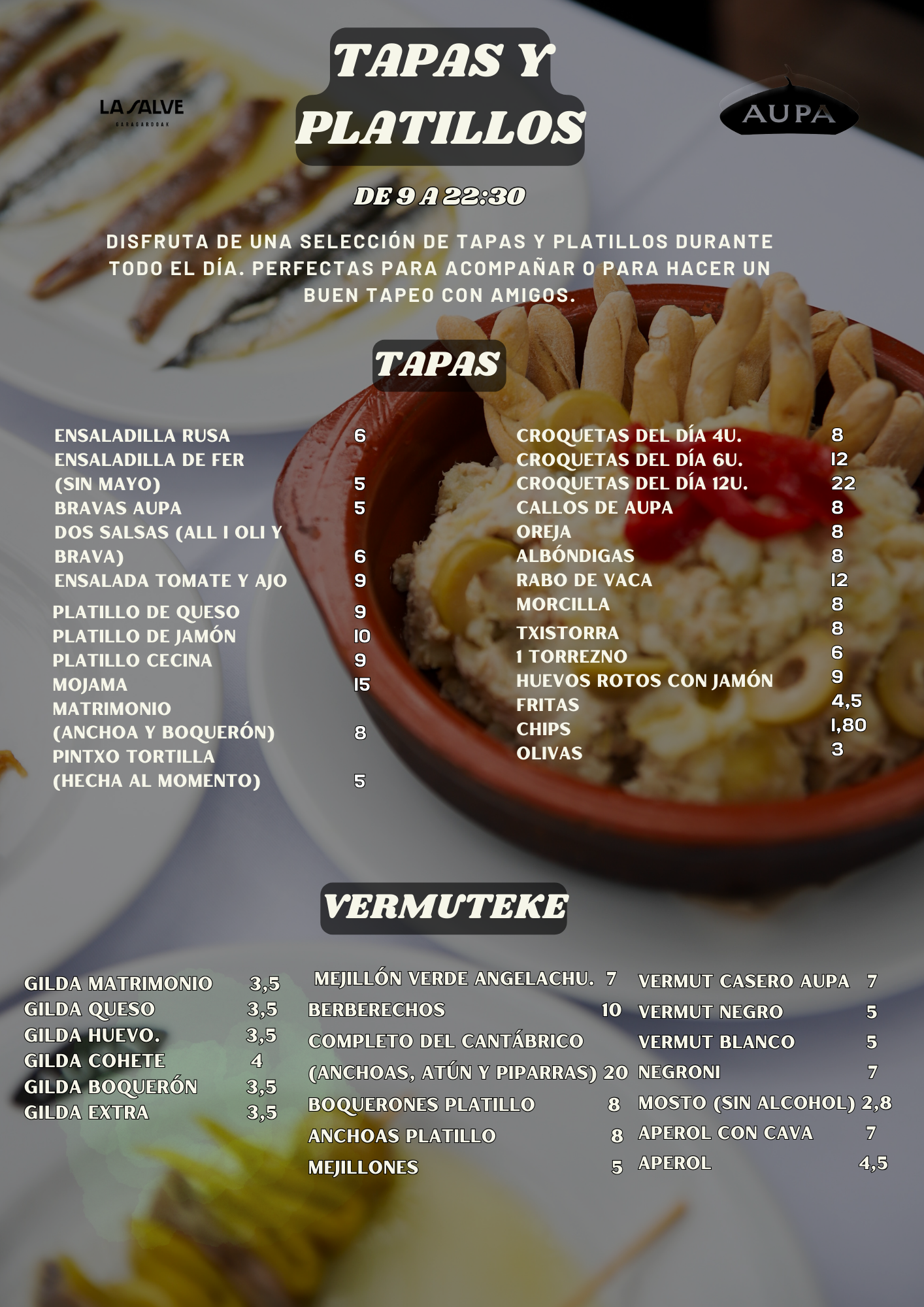 Entdecken Sie die authentische Essenz der baskischen Küche in der Taberna Aupa, einem Teil des renommierten Restaurants Asador Aupa in Cabrera de Mar. Wir sind stolz darauf, ein einzigartiges kulinarisches Erlebnis zu bieten, mit ausgedehnten Öffnungszeiten für jeden Moment des Tages.